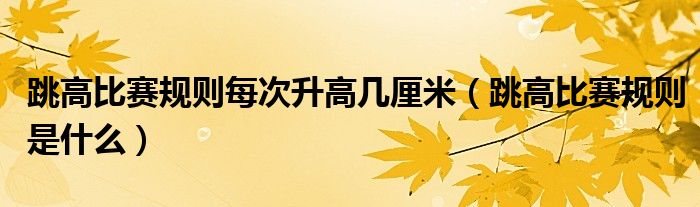 导读 大家好,精选小综来为大家解答以上的问题。跳高比赛规则每次升高几厘米,跳高比赛规则是什么很多人还不知道,现在让我们一起来看看吧!跳高