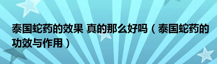导读 大家好,精选小综来为大家解答以上的问题。泰国蛇药的效果 真的那么好吗,泰国蛇药的功效与作用很多人还不知道,现在让我们一起来看看吧!