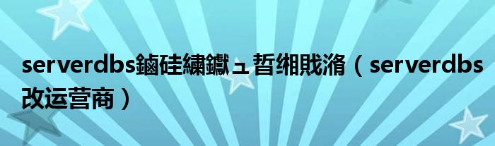 导读 大家好,精选小综来为大家解答以上的问题。serverdbs鏀硅繍钀ュ晢缃戝潃,serverdbs改运营商很多人还不知道,现在让我们一起来看看吧!众所
