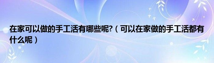 导读 大家好,精选小综来为大家解答以上的问题。在家可以做的手工活有哪些呢?,可以在家做的手工活都有什么呢很多人还不知道,现在让我们一起来