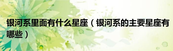 银河系的主要星座有天鹅座、天鹰座、武拉座、人马座、蛇夫座、神盾局、人马座、天蝎座、神坛座、人马座、豺狼座、南三角、指南针、苍蝇座、南十字星座、船帆座、尾巴座、独角兽座、猎户座、金牛座、双子座等。