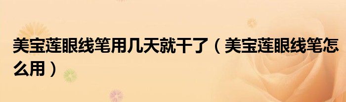 导读 大家好,精选小综来为大家解答以上的问题。美宝莲眼线笔用几天就干了,美宝莲眼线笔怎么用很多人还不知道,现在让我们一起来看看吧!眼线笔