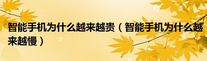 导读 大家好,精选小综来为大家解答以上的问题。智能手机为什么越来越贵,智能手机为什么越来越慢很多人还不知道,现在让我们一起来看看吧!智能