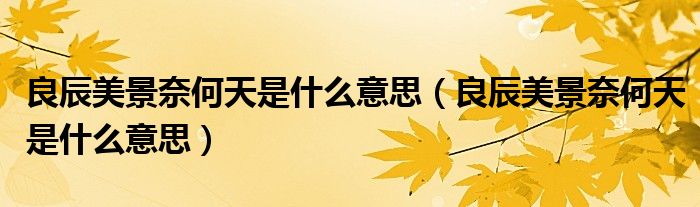 导读 大家好,精选小综来为大家解答以上的问题。良辰美景奈何天是什么意思,良辰美景奈何天是什么意思很多人还不知道,现在让我们一起来看看吧!
