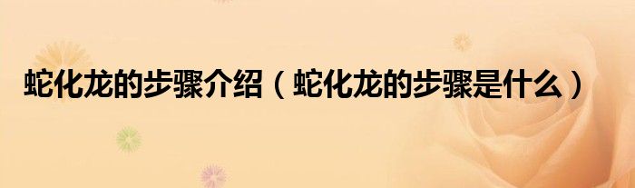 大家好,精选小综来为大家解答以上的问题。蛇化龙的步骤介绍,蛇化龙的步骤是什么很多人还不知道,现在让我们一起来看看吧!