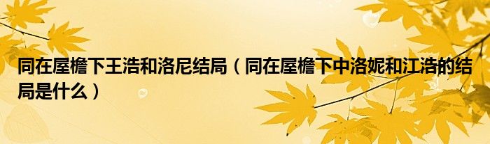 导读 大家好,精选小综来为大家解答以上的问题。同在屋檐下王浩和洛尼结局,同在屋檐下中洛妮和江浩的结局是什么很多人还不知道,现在让我们一起