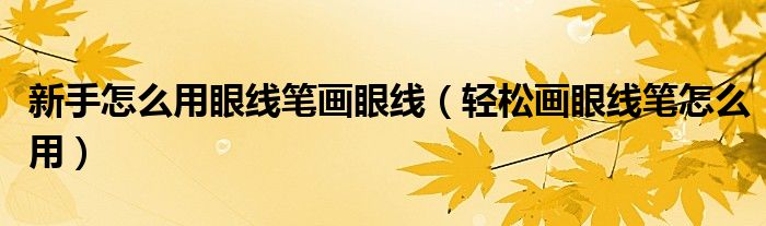 导读 大家好,精选小综来为大家解答以上的问题。新手怎么用眼线笔画眼线,轻松画眼线笔怎么用很多人还不知道,现在让我们一起来看看吧!轻松眼线