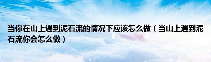 大家好,精选小综来为大家解答以上的问题。当你在山上遇到泥石流的情况下应该怎么做,当山上遇到泥石流你会怎么做很多人还不知道,现在让我们一起来看看吧!