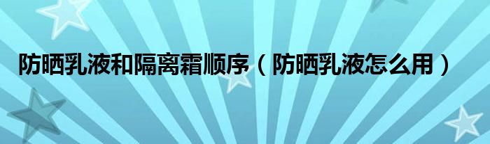 大家好,精选小综来为大家解答以上的问题。防晒乳液和隔离霜顺序,防晒乳液怎么用很多人还不知道,现在让我们一起来看看吧!