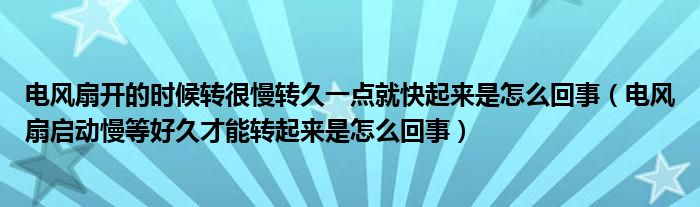 大家好,精选小综来为大家解答以上的问题。电风扇开的时候转很慢转久一点就快起来是怎么回事,电风扇启动慢等好久才能转起来是怎么回事很多人还不知道,现在让我们一起来看看吧!