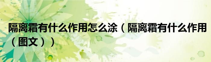 导读 大家好,精选小综来为大家解答以上的问题。隔离霜有什么作用怎么涂,隔离霜有什么作用,图文很多人还不知道,现在让我们一起来看看吧!查看
