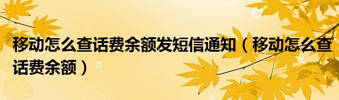 导读 大家好,精选小综来为大家解答以上的问题。移动怎么查话费余额发短信通知,移动怎么查话费余额很多人还不知道,现在让我们一起来看看吧!以