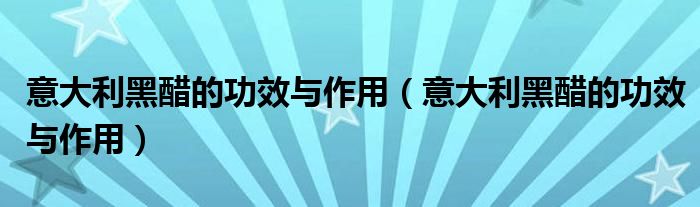 导读 大家好,精选小综来为大家解答以上的问题。意大利黑醋的功效与作用,意大利黑醋的功效与作用很多人还不知道,现在让我们一起来看看吧!意大