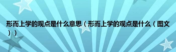 大家好,精选小综来为大家解答以上的问题。形而上学的观点是什么意思,形而上学的观点是什么,图文很多人还不知道,现在让我们一起来看看吧!