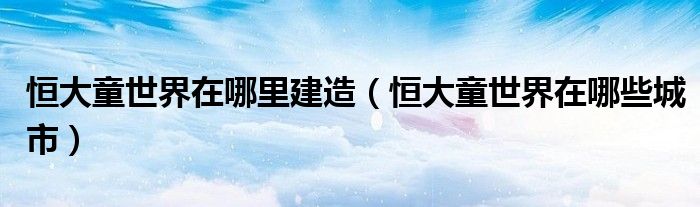 导读 大家好,精选小综来为大家解答以上的问题。恒大童世界在哪里建造,恒大童世界在哪些城市很多人还不知道,现在让我们一起来看看吧!儿童世界
