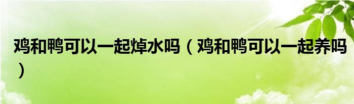 导读 大家好,精选小综来为大家解答以上的问题。鸡和鸭可以一起焯水吗,鸡和鸭可以一起养吗很多人还不知道,现在让我们一起来看看吧!你不能把鸡