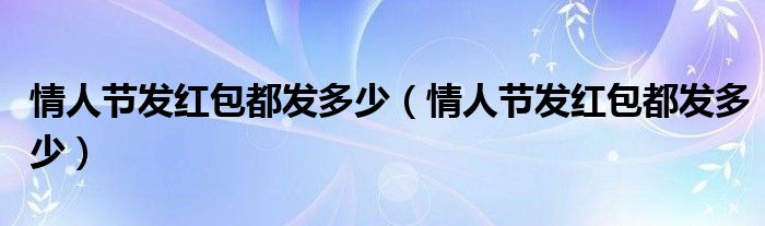 导读 大家好,精选小综来为大家解答以上的问题。情人节发红包都发多少,情人节发红包都发多少很多人还不知道,现在让我们一起来看看吧!今天是情