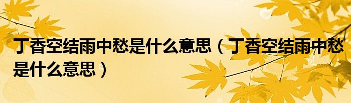 导读 大家好,精选小综来为大家解答以上的问题。丁香空结雨中愁是什么意思,丁香空结雨中愁是什么意思很多人还不知道,现在让我们一起来看看吧!