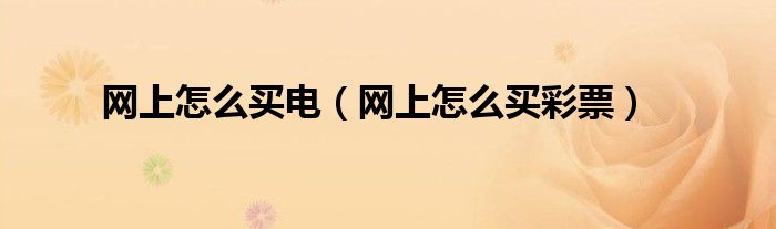大家好,精选小综来为大家解答以上的问题。网上怎么买电,网上怎么买彩票很多人还不知道,现在让我们一起来看看吧!