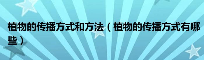 导读 大家好,精选小综来为大家解答以上的问题。植物的传播方式和方法,植物的传播方式有哪些很多人还不知道,现在让我们一起来看看吧!植物的传