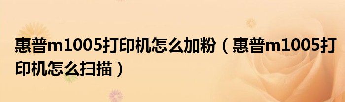 大家好,精选小综来为大家解答以上的问题。惠普m1005打印机怎么加粉,惠普m1005打印机怎么扫描很多人还不知道,现在让我们一起来看看吧!