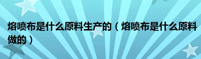 导读 大家好,精选小综来为大家解答以上的问题。熔喷布是什么原料生产的,熔喷布是什么原料做的很多人还不知道,现在让我们一起来看看吧!熔喷布