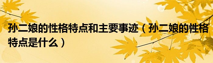 导读 大家好,精选小综来为大家解答以上的问题。孙二娘的性格特点和主要事迹,孙二娘的性格特点是什么很多人还不知道,现在让我们一起来看看吧!