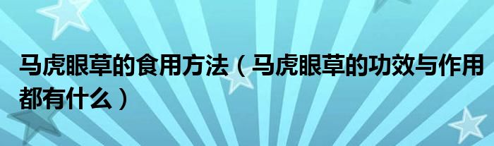 导读 大家好,精选小综来为大家解答以上的问题。马虎眼草的食用方法,马虎眼草的功效与作用都有什么很多人还不知道,现在让我们一起来看看吧!麦