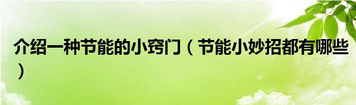 导读 大家好,精选小综来为大家解答以上的问题。介绍一种节能的小窍门,节能小妙招都有哪些很多人还不知道,现在让我们一起来看看吧!在提倡环保
