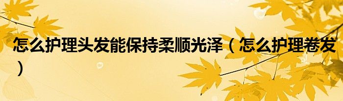 大家好,精选小综来为大家解答以上的问题。怎么护理头发能保持柔顺光泽,怎么护理卷发很多人还不知道,现在让我们一起来看看吧!