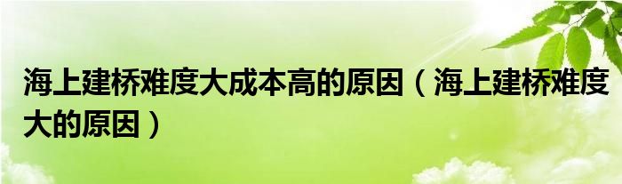 导读 大家好,精选小综来为大家解答以上的问题。海上建桥难度大成本高的原因,海上建桥难度大的原因很多人还不知道,现在让我们一起来看看吧!海