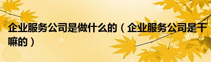 大家好,精选小综来为大家解答以上的问题。企业服务公司是做什么的,企业服务公司是干嘛的很多人还不知道,现在让我们一起来看看吧!