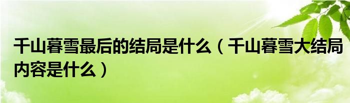 导读 大家好,精选小综来为大家解答以上的问题。千山暮雪最后的结局是什么,千山暮雪大结局内容是什么很多人还不知道,现在让我们一起来看看吧!