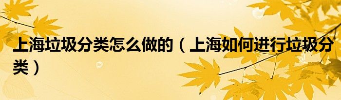 导读 大家好,精选小综来为大家解答以上的问题。上海垃圾分类怎么做的,上海如何进行垃圾分类很多人还不知道,现在让我们一起来看看吧!垃圾是不