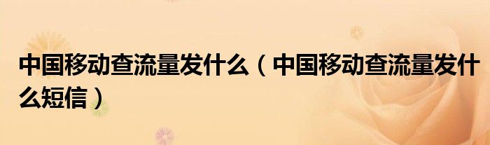 导读 大家好,精选小综来为大家解答以上的问题。中国移动查流量发什么,中国移动查流量发什么短信很多人还不知道,现在让我们一起来看看吧!中国