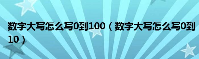 导读 大家好,精选小综来为大家解答以上的问题。数字大写怎么写0到100,数字大写怎么写0到10很多人还不知道,现在让我们一起来看看吧!小写数字0