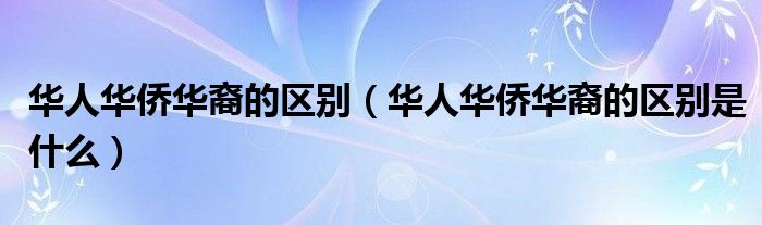 导读 大家好,精选小综来为大家解答以上的问题。华人华侨华裔的区别,华人华侨华裔的区别是什么很多人还不知道,现在让我们一起来看看吧!华人、