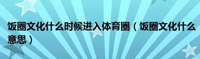 大家好,精选小综来为大家解答以上的问题。饭圈文化什么时候进入体育圈,饭圈文化什么意思很多人还不知道,现在让我们一起来看看吧!