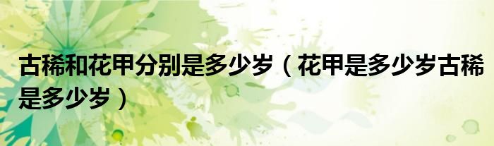 导读 大家好,精选小综来为大家解答以上的问题。古稀和花甲分别是多少岁,花甲是多少岁古稀是多少岁很多人还不知道,现在让我们一起来看看吧!在