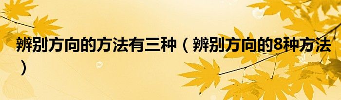 导读 大家好,精选小综来为大家解答以上的问题。辨别方向的方法有三种,辨别方向的8种方法很多人还不知道,现在让我们一起来看看吧!现在,许多