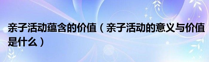 导读 大家好,精选小综来为大家解答以上的问题。亲子活动蕴含的价值,亲子活动的意义与价值是什么很多人还不知道,现在让我们一起来看看吧!亲子