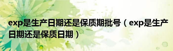 导读 大家好,精选小综来为大家解答以上的问题。exp是生产日期还是保质期批号,exp是生产日期还是保质日期很多人还不知道,现在让我们一起来看看