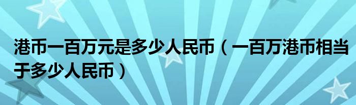 现在内地与香港的贸易或旅游交流越来越频繁,所以会涉及到货币兑换。那么一百万港币等于多少人民币呢?