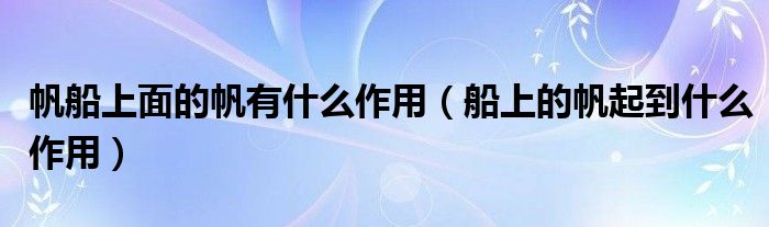大家好,精选小综来为大家解答以上的问题。帆船上面的帆有什么作用,船上的帆起到什么作用很多人还不知道,现在让我们一起来看看吧!