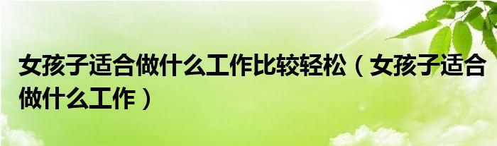 导读 大家好,精选小综来为大家解答以上的问题。女孩子适合做什么工作比较轻松,女孩子适合做什么工作很多人还不知道,现在让我们一起来看看吧!