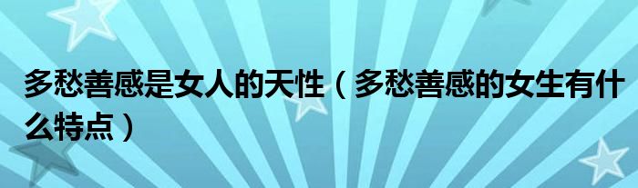 大家好,精选小综来为大家解答以上的问题。多愁善感是女人的天性,多愁善感的女生有什么特点很多人还不知道,现在让我们一起来看看吧!