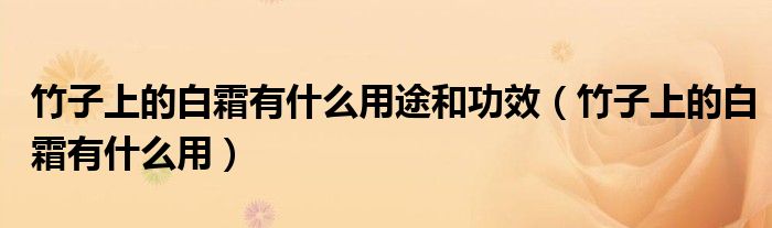 大家好,精选小综来为大家解答以上的问题。竹子上的白霜有什么用途和功效,竹子上的白霜有什么用很多人还不知道,现在让我们一起来看看吧!
