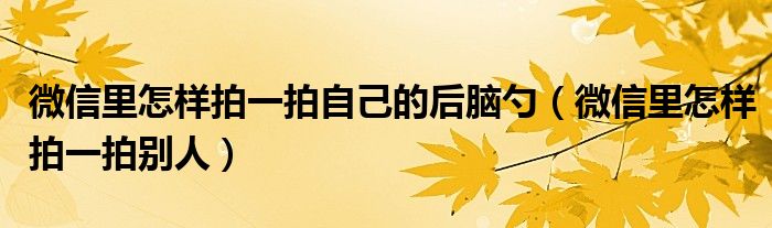 大家好,精选小综来为大家解答以上的问题。微信里怎样拍一拍自己的后脑勺,微信里怎样拍一拍别人很多人还不知道,现在让我们一起来看看吧!