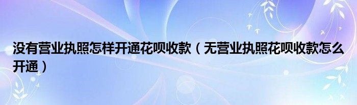 导读 大家好,精选小综来为大家解答以上的问题。没有营业执照怎样开通花呗收款,无营业执照花呗收款怎么开通很多人还不知道,现在让我们一起来看