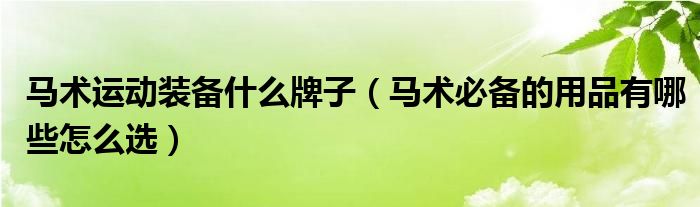 导读 大家好,精选小综来为大家解答以上的问题。马术运动装备什么牌子,马术必备的用品有哪些怎么选很多人还不知道,现在让我们一起来看看吧!马